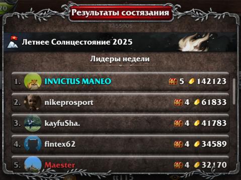 Если вы находились в этот момент не в игре, ничего страшного, при входе в игру вы получите уведомление о результатах состязания, а награда, если вы попали в список лидеров, будет вам выдана автоматически. Если вы участвовали в состязании на прошлой неделе, вы всегда можете посмотреть его результаты. На закладке "Быстрая игра" в игровом лобби, вы можете найти прошлое состязание.